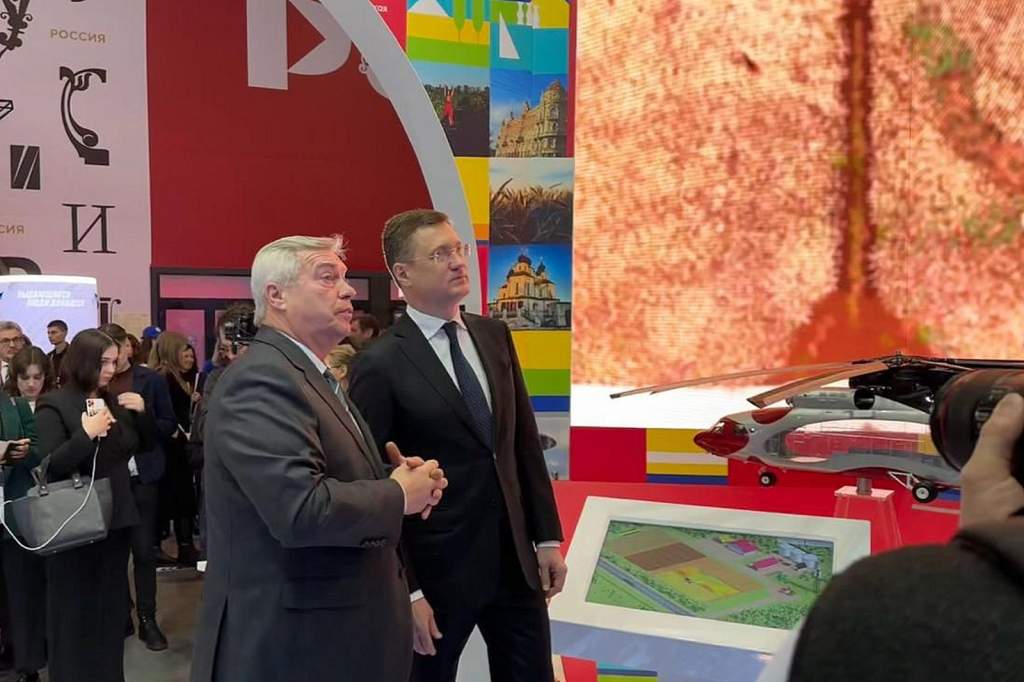 В рамках отраслевого дня стенд Ростовской области посетил заместитель председателя Правительства России Александр Новак. Василий Голубев рассказал вице-премьеру о представленных на стенде проектах в сфере топливно-энергетического комплекса донского региона.