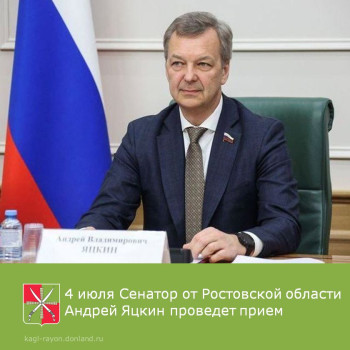 4 июля Сенатор от Ростовской области Андрей Яцкин проведет прием