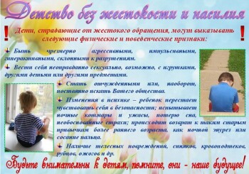 Кагальничане, подарите вашему ребенку детство без жестокости и насилия. Жестокое обращение не сводится только к избиению. Не менее травмирующими могут быть насмешки, оскорбления, унижающие сравнения, необоснованная критика.