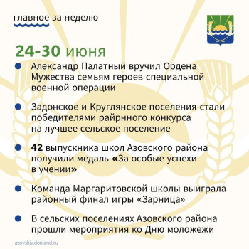 #Азовскийрайон #АдминистрацияАзовскогорайона #итогинедели