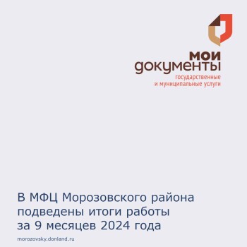 Многофункциональный центр (МФЦ) «Мои документы» Морозовского района подвел итоги своей работы за девять месяцев 2024 года. За этот период было достигнуто множество значительных результатов, которые свидетельствуют о высоком уровне обслуживания населения.