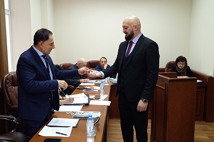 Заседание Совета традиционно началось с принесения присяги. 10 претендентов, успешно сдавшие квалификационный экзамен, стали членами адвокатского сообщества. Президент Палаты Г.С. Джелаухов поздравил их с присвоением статуса адвоката и вручил новым членам корпорации нагрудный Знак адвоката.