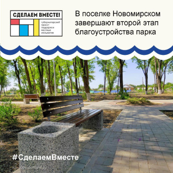 В поселке Новомирском завершается второй этап благоустройства парка. Работы проводятся по губернаторской программе «Сделаем вместе».