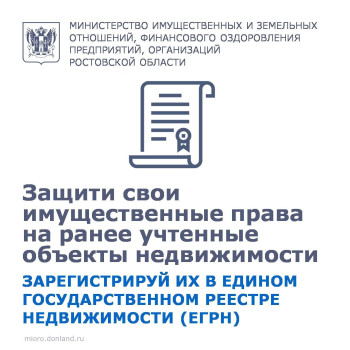 Узнать зарегистрированы ли права в Едином государственном реестр недвижимости или нет можно на сайте Росреестра через сервис «Сведения об объектах недвижимости в режиме online» (https://clck.ru/XvNP8), а также на официальном сайте минимущества Ростовской области в разделе «Деятельность/Выявление правообладателей ранее учтенных объектов недвижимости» (https://clck.ru/3B4f9k).