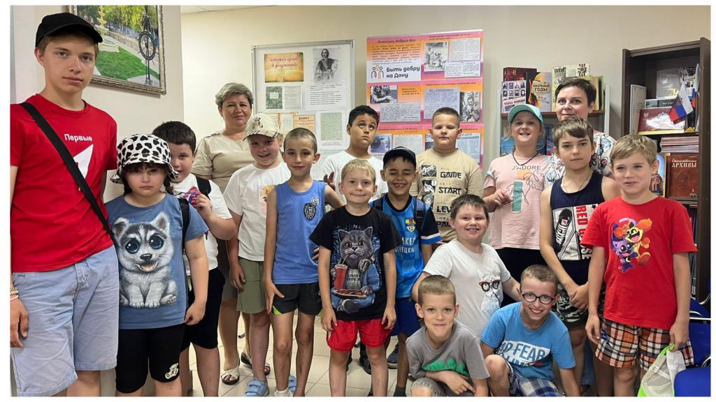 На прошедшей неделе ребята, отдыхающие в летнем оздоровительном лагере «Улыбка» школы № 2, посетили стационарную выставку архивных документов «Летопись добрых дел», подготовленную специалистами архивного сектора Администрации Усть-Донецкого района.