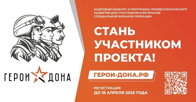 Кадровая программа «Герои Дона» является региональным продолжением президентского образовательного проекта «Время Героев». Уважаемые азовчане, обязательными требованиями для участия в проекте «Герои Дона» являются гражданство Российской Федерации, участие в специальной военной операции, высшее образование, управленческий опыт, отсутствие судимости.