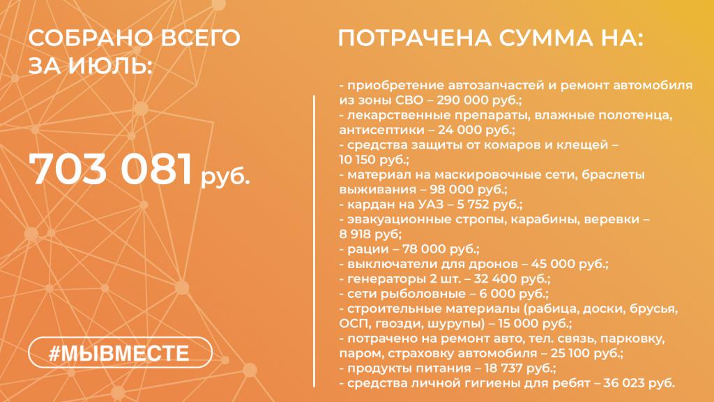 Рассказываем в этой публикации о поступлениях и расходах штаба #МЫВМЕСТЕ за июль.
