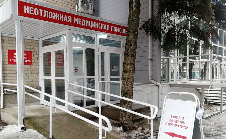 Вход в фильтр поликлиники ЦГБ Азова. Фото ruffnews.ru
