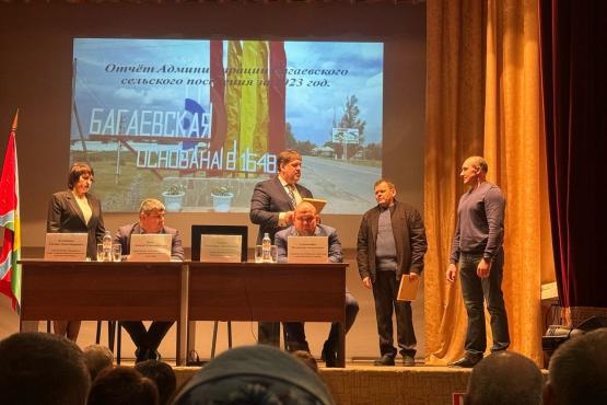 - В целом Багаевский район является стабильно развивающийся территорией. Только с 2019 года в районе построены и введены в эксплуатацию здание школы на 600 мест, детсада на 220 мест, капитально отремонтированы несколько спортивных залов, в школах открыты «точки роста». Также развиваются объекты инфраструктуры, благоустроена территория парка в станице Багаевской, - резюмировал по итогам отчета о работе багаевских властей первый заместитель министра общего и профессионального образования Ростовской области Сергей Анищенков. Источник фото: пресс-служба правительства РО