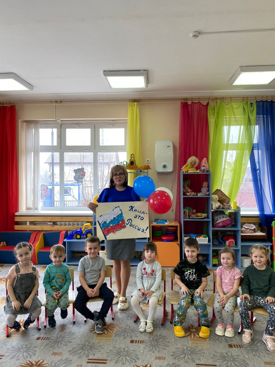С целью формирования у детей патриотических чувств, уважения к истории, развития интереса к историческим событиям, произошедшим в Крыму 18 марта в МБДОУ д/с №7 во всех возрастных группах прошли тематические досуги, посвященные Дню воссоединения Крыма с Россией.