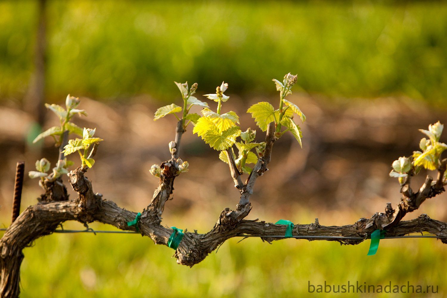 Важно следить за интенсивностью распускания почек. Подвязывать виноград нужно правильно - горизонтально или под наклоном. Побеги появятся примерно к концу апреля, на 1 м шпалеры должно быть 10 побегов, через каждые 10 см. Если побегов слишком много, необходимо обломать лишние . Например, если с одной почки несколько побегов , лучше оставить один. Есть риск сократить свой урожай, оставляя лишние побеги, потому что корням не хватит сил поддерживать куст полностью.
